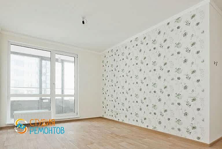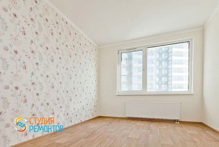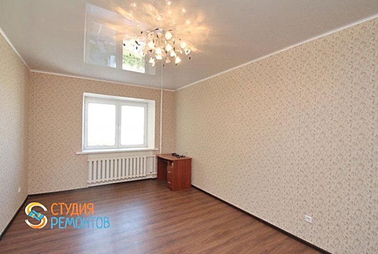 (входит: оклейка стен обоями; установка натяжных потолков; укладка линолеума; установка люстры; Пинап розеток и выключателей; монтаж напольных плинтусов)