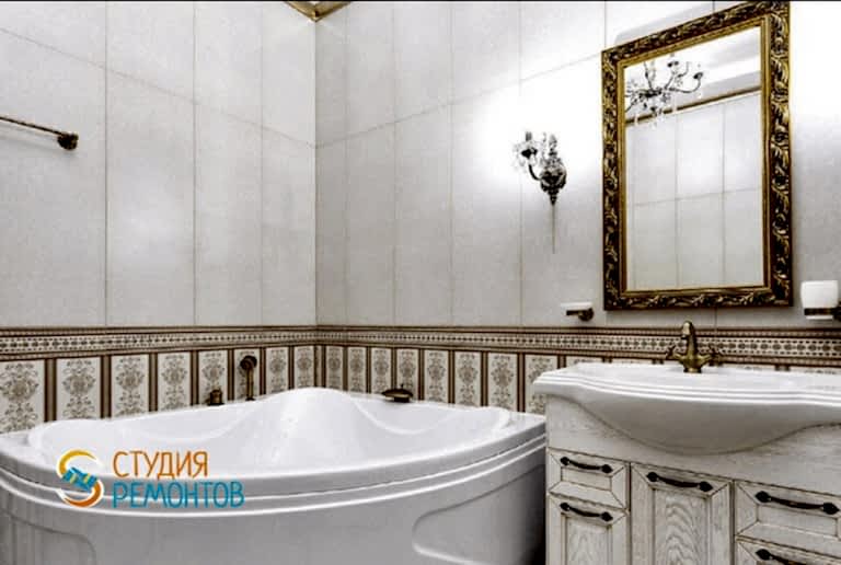 (входит: демонтаж существующих покрытий; установка панелей; установка Пинап потолка; укладка плитки на пол; монтаж кранов)