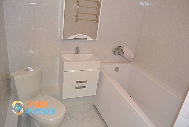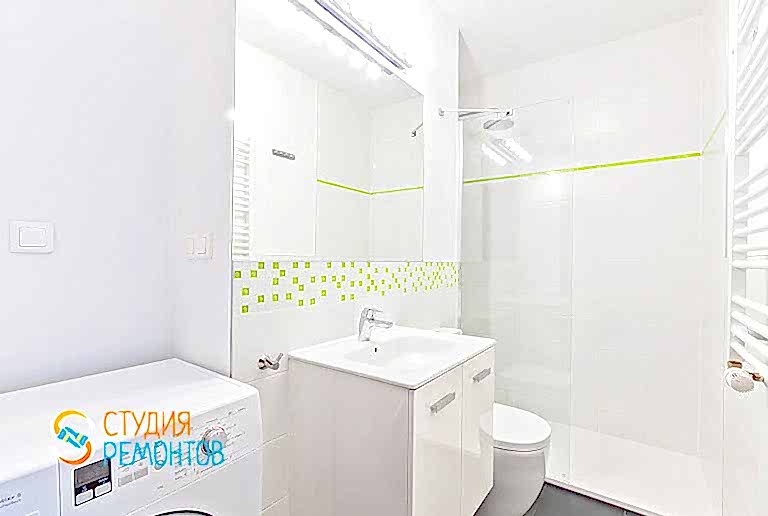 (входит: демонтаж существующих покрытий; установка панелей; установка реечного потолка; Пинап плитки на пол; монтаж кранов)