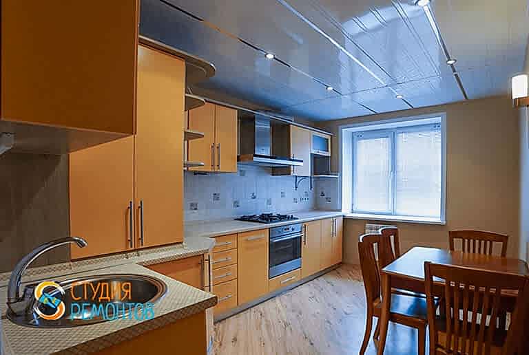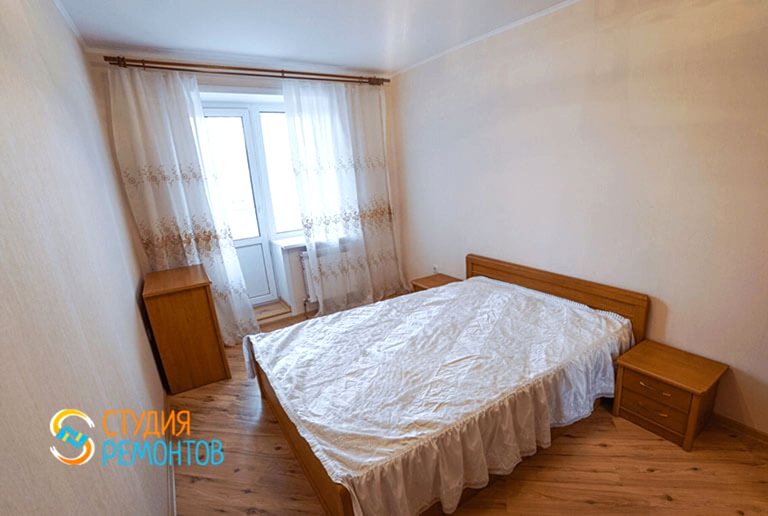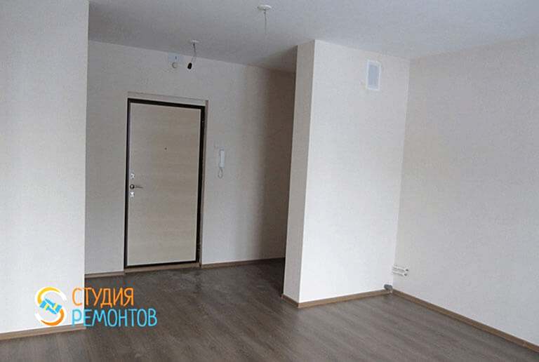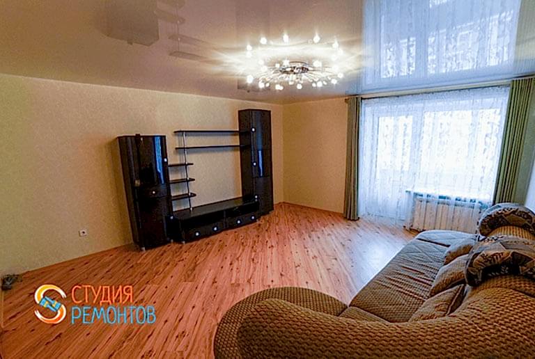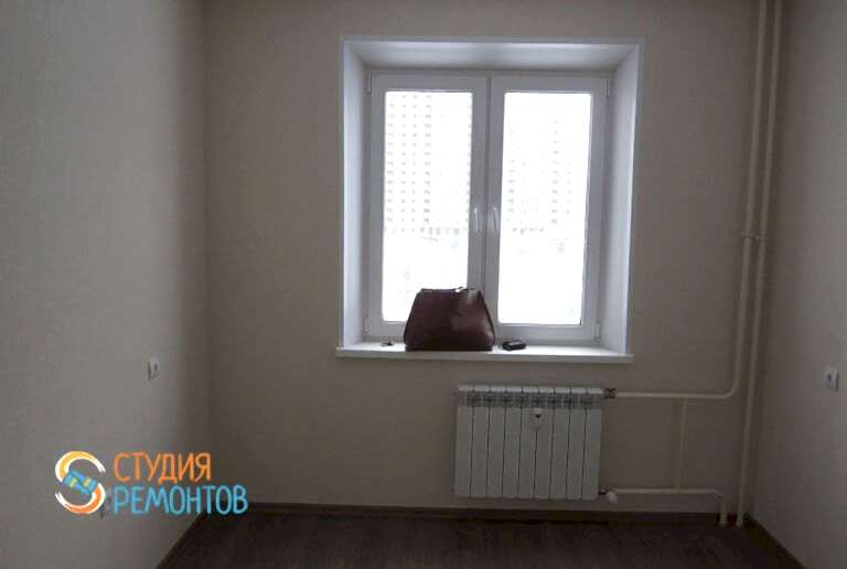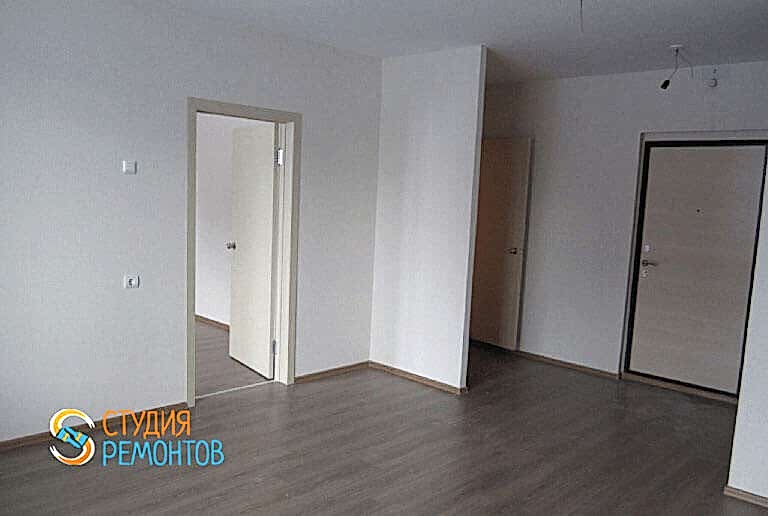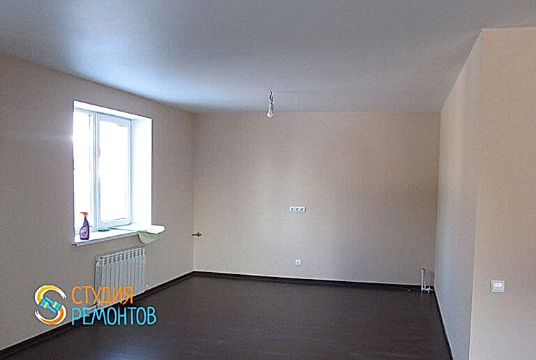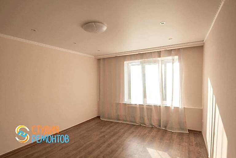 (входит: выравнивание пола; шпаклевка стен; укладка ламината; монтаж плинтусов; оклейка стен обоями; монтаж натяжного потолка; монтаж механизмов розеток и приборов освещения)