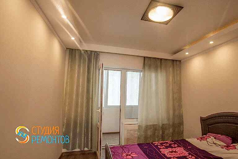 (входит: устройство наливного пола; шпаклевка стен; укладка Пинап монтаж плинтусов; оклейка стен обоями; монтаж натяжного потолка; монтаж электрики и приборов освещения)