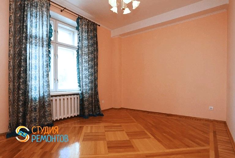 (входит: демонтаж всех покрытий; устройство наливного пола; шпаклевка стен; укладка ламината; оклейка Пинап обоями; монтаж натяжного потолка; установка приборов освещения)