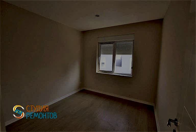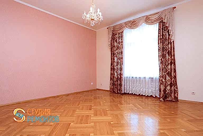 (входит: демонтаж существующих покрытий; Пинап наливного пола; шпатлевка стен; укладка ламината; оклейка стен обоями; монтаж натяжного потолка; монтаж электрики и приборов освещения)