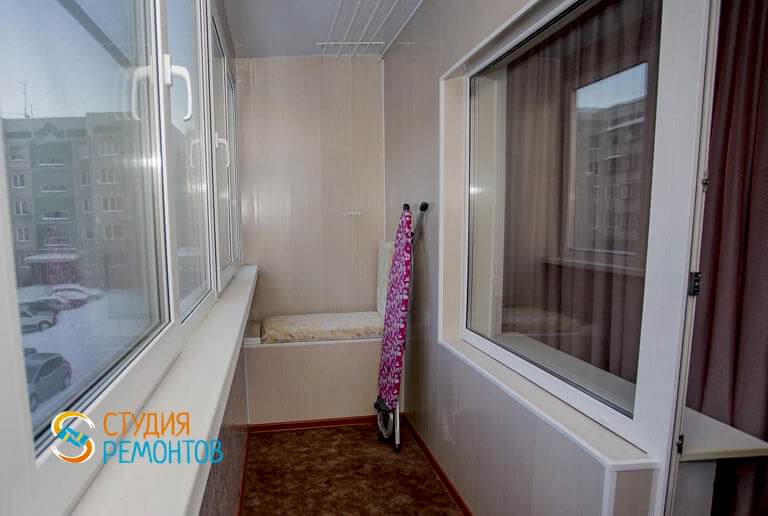 (входит: демонтаж старых покрытий, монтаж ПВХ панелей на потолок и стены, укладка линолеума на пол, Пинап освещения)