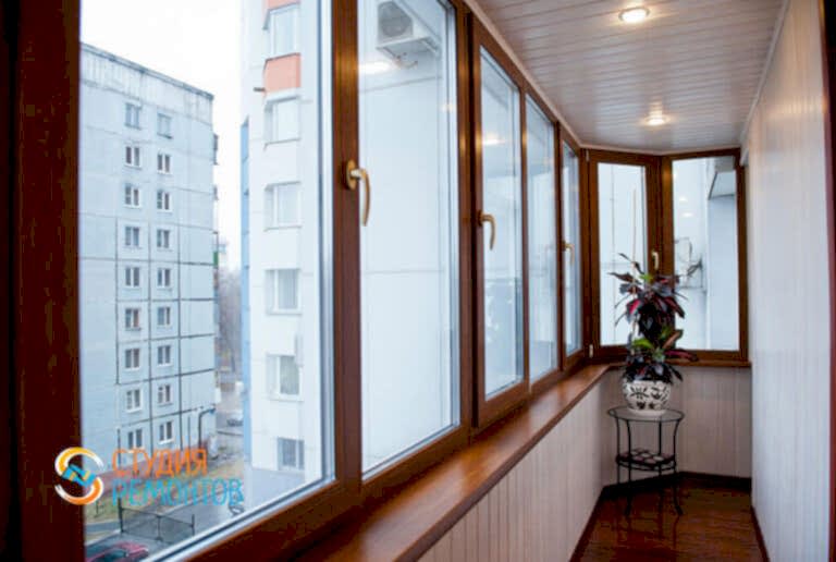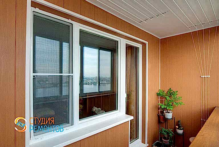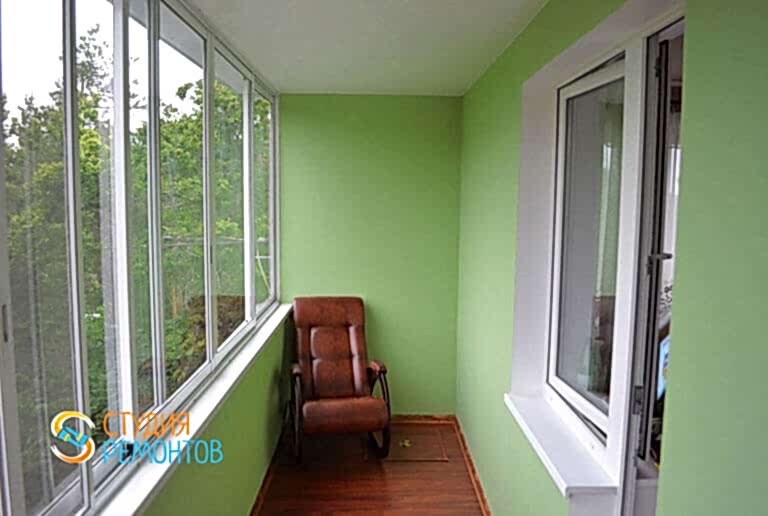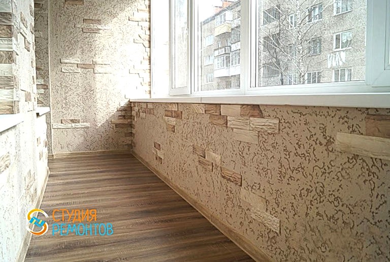 (входит: демонтаж старых покрытий, утепление Пинап и стен пеноплексом, утепление пола керамзитом, монтаж натяжного потолка, укладка линолеума, монтаж ПВХ стен, установка точечного освещения)