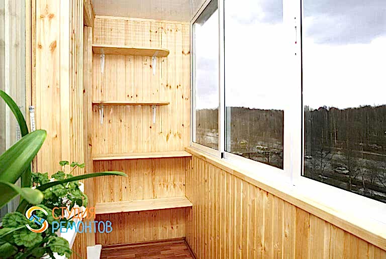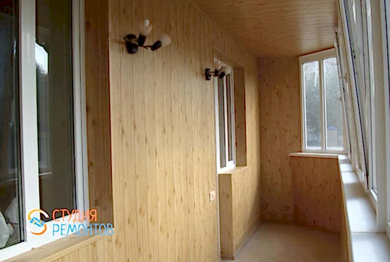 (входит: демонтаж существующих покрытий, монтаж деревянной вагонки на стены, пол и Пинап устройство откосов)