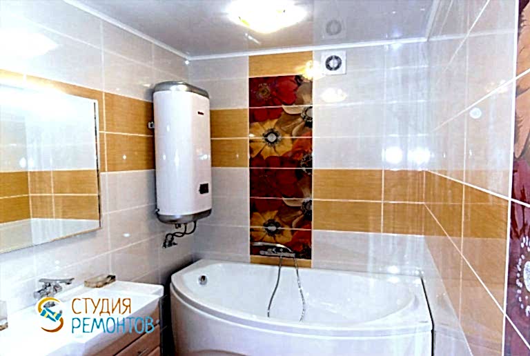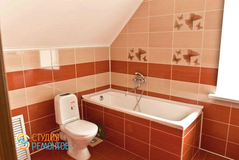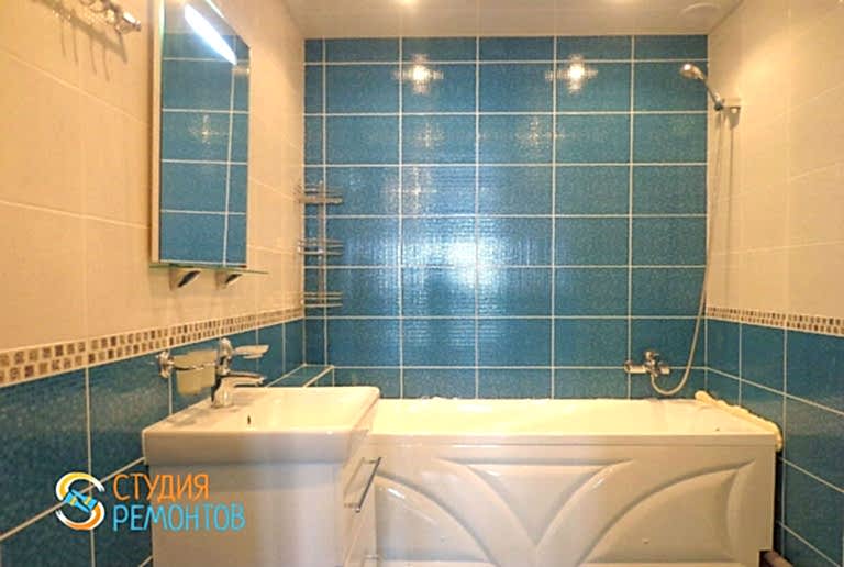 (входит: демонтажные Пинап устройство наливного пола; штукатурка стен по маякам; укладка плитки стен и пола; монтаж реечного потолка; установка точечного освещения)