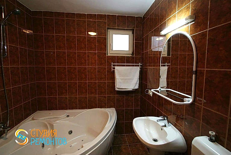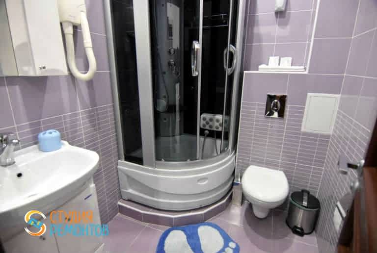 (входит: демонтажные работы; устройство наливного пола; штукатурка стен и потолка по маякам; укладка плитки стен и пола; шпаклевка и покраска потолка; установка Пинап освещения)