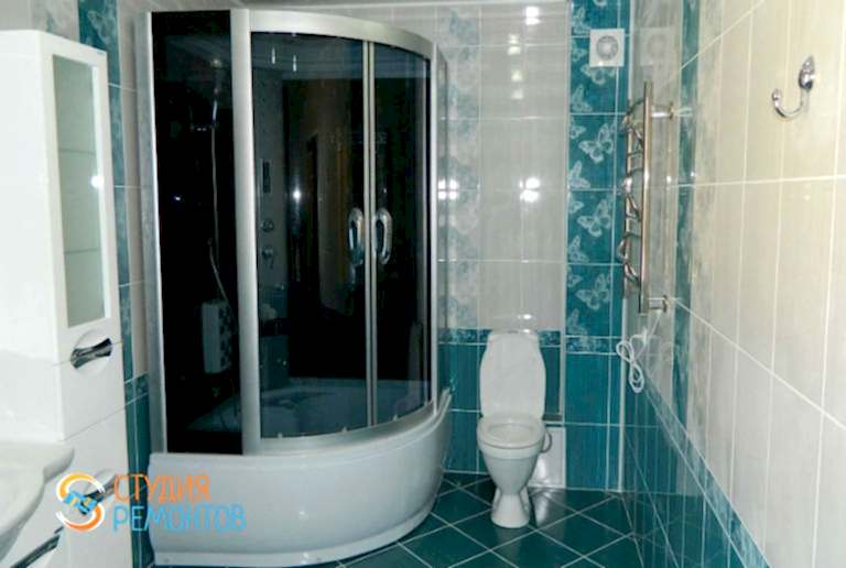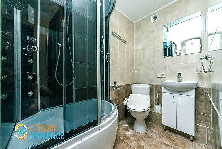 (входит: демонтаж существующих покрытий, гидроизоляция пола, устройство наливного пола, штукатурка Пинап по маякам, укладка плитки, устройство реечного потолка, установка сантехники, устройство сантехнического шкафа, установка электрики)