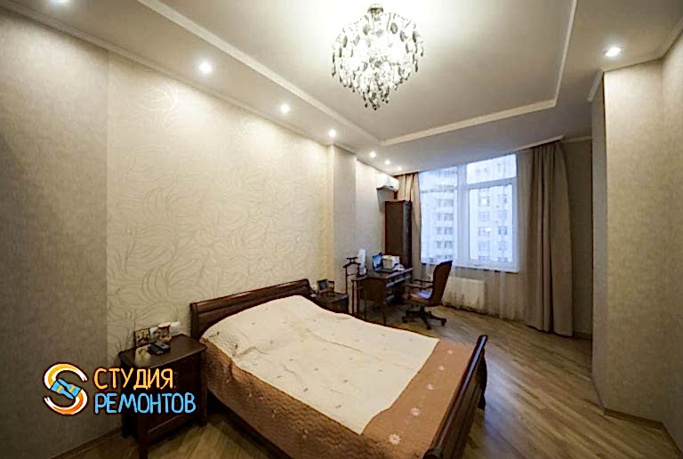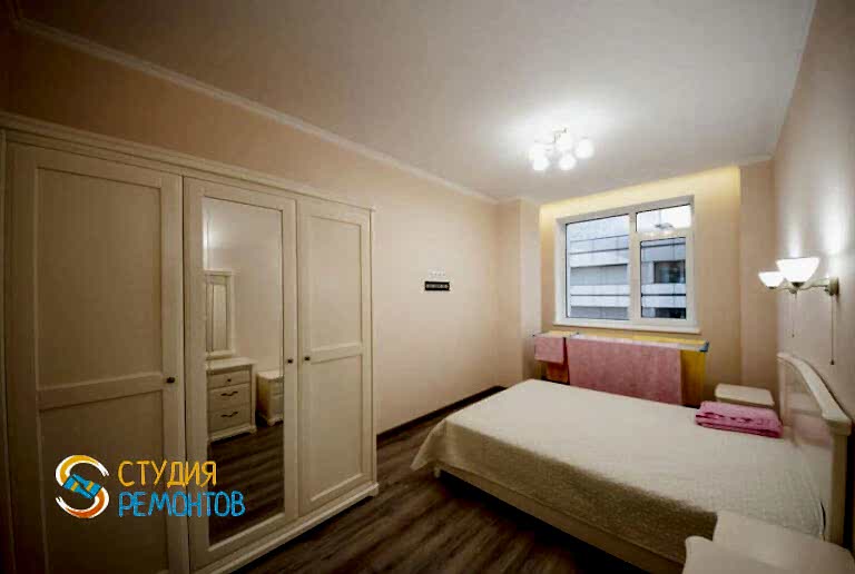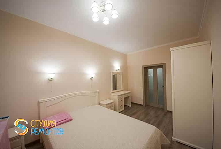 (входит: разводка сантехнических труб; монтаж Пинап стяжка пола, штукатурка стен; шпаклевка стен; устройство ПВХ панелей в с/у; укладка ламината; поклейка обоев; монтаж плинтусов; установка дверей; монтаж натяжного потолка)