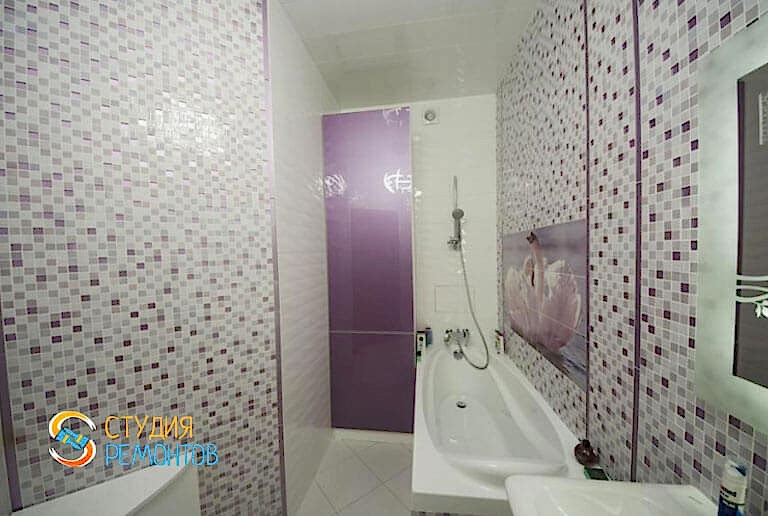 (входит: разводка сантехнических труб; монтаж электрики; стяжка Пинап штукатурка стен; шпаклевка стен; устройство ПВХ панелей в сВсе материалы включены в стоимость)