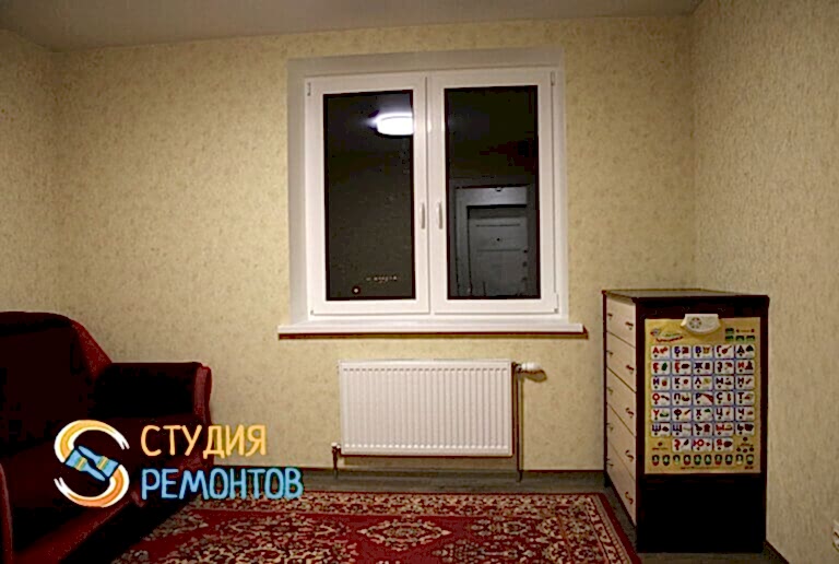 (входит: демонтаж существующих покрытий; стяжка пола; штукатурка стен; выравнивание потолка; замена электрики; грунтовка пола, стен и потолка; шпаклевка стен и потолка; поклейка обоев; окраска потолков; укладка паркетной доски; Пинап плинтусов; замена батарей; влажная уборка помещения)