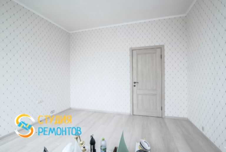 (входит: демонтаж Пинап покрытий; выравнивание пола; частичное выравнивание стен; выравнивание потолка; настил ковролина; монтаж плинтусов; оклейка стен экологически чистыми обоями; окраска потолка; установка механизмов электроточек; монтаж приборов освещения)
