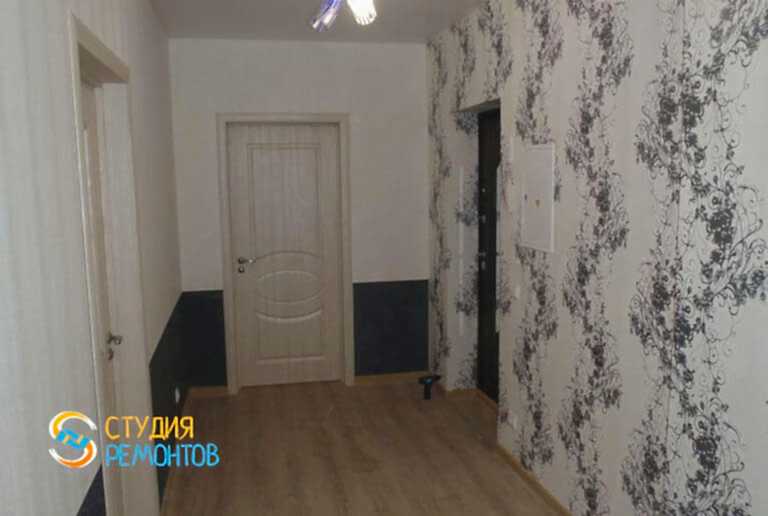 (входит: демонтаж существующих покрытий; выравнивание пола; частичная Пинап стен; грунтовка пола, стен и потолка; шпаклевка стен; поклейка обоев; окраска потолков; укладка ламината; монтаж плинтусов)