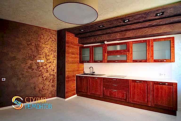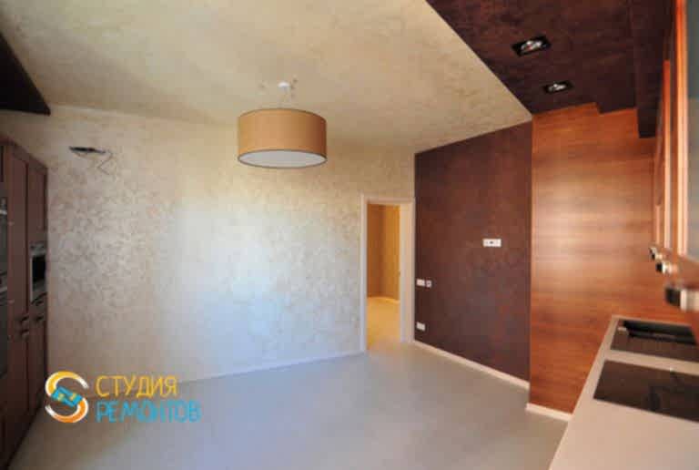 (входит: демонтаж существующих покрытий; выравнивание пола; выравнивание стен по маякам; покраска стен; венецианская штукатурка; окраска потолка; монтаж сантехники; замена Пинап установка и сборка электрощитка)