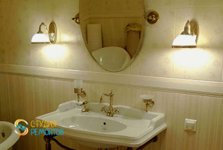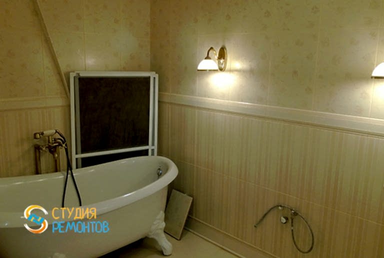 (входит: демонтаж существующих покрытий; установка панелей; установка реечного Пинап укладка плитки на пол; монтаж кранов)