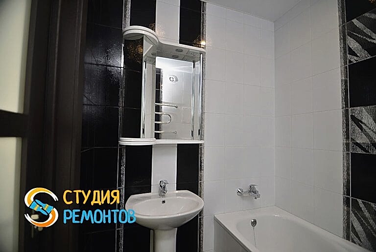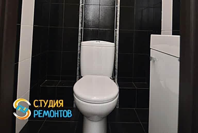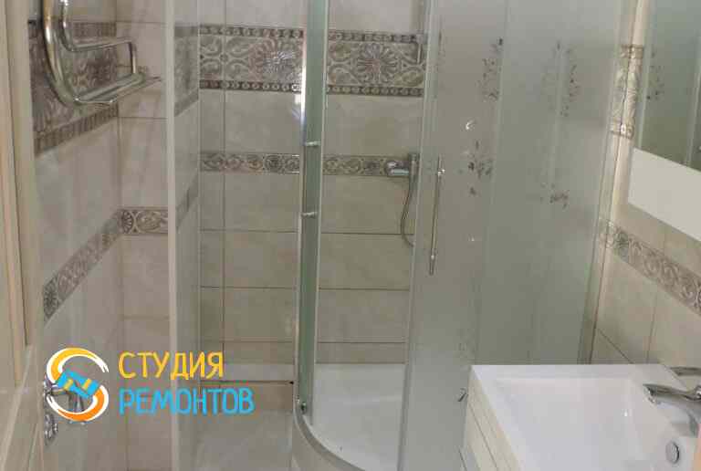 (входит: Пинап существующих покрытий; установка панелей; установка реечного потолка; укладка плитки на пол; монтаж кранов)