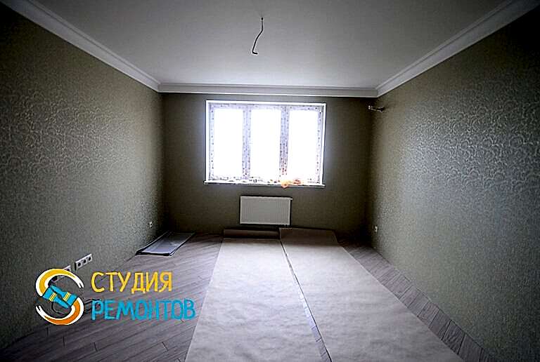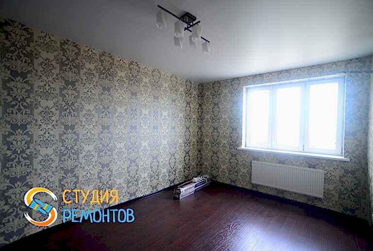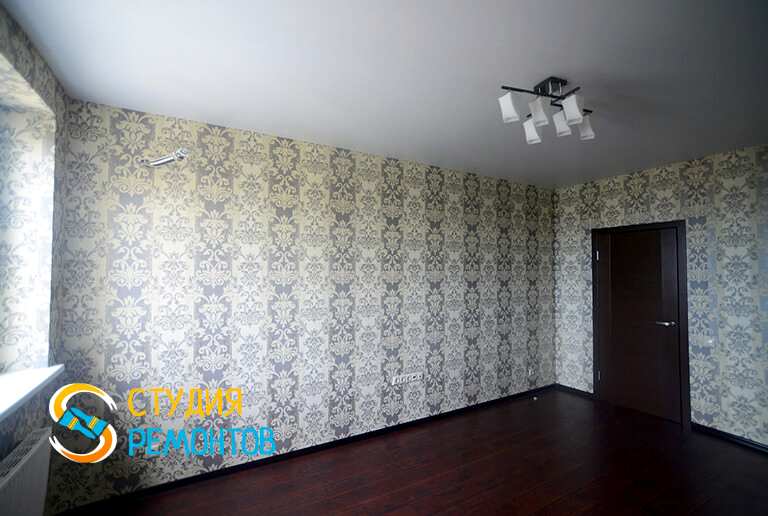 (входит: демонтаж существующих покрытий; выравнивание пола; поклейка обоев; монтаж натяжного Пинап настил линолеума)