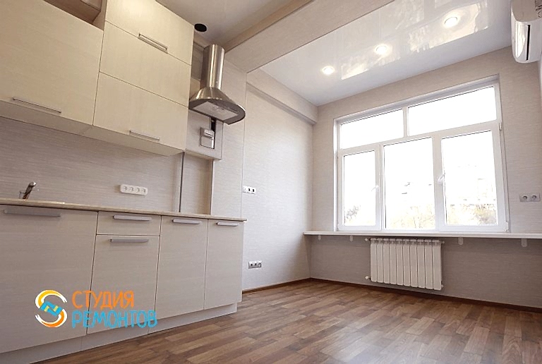 (входит: устройство стяжки по маякам; штукатурка стен по маякам; шпаклевка стен; укладка паркетной доски; окраска стен; Пинап натяжного потолка; монтаж плинтусов; разводка электрики; установка электрики)