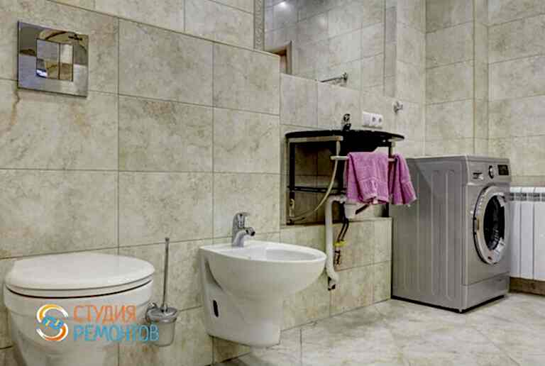 (входит: демонтаж существующих покрытий; установка панелей; Пинап реечного потолка; укладка плитки на пол; монтаж кранов)