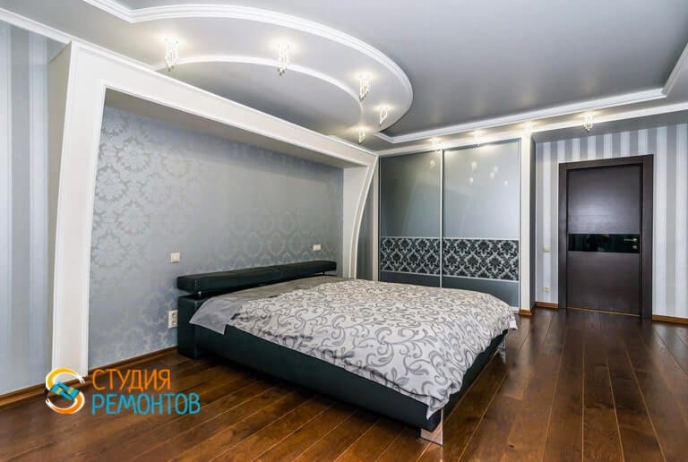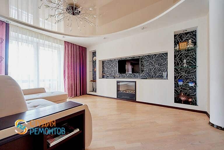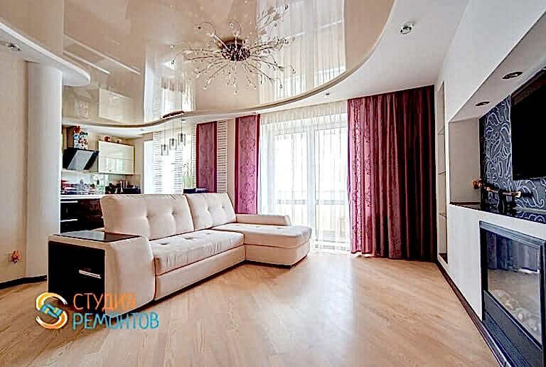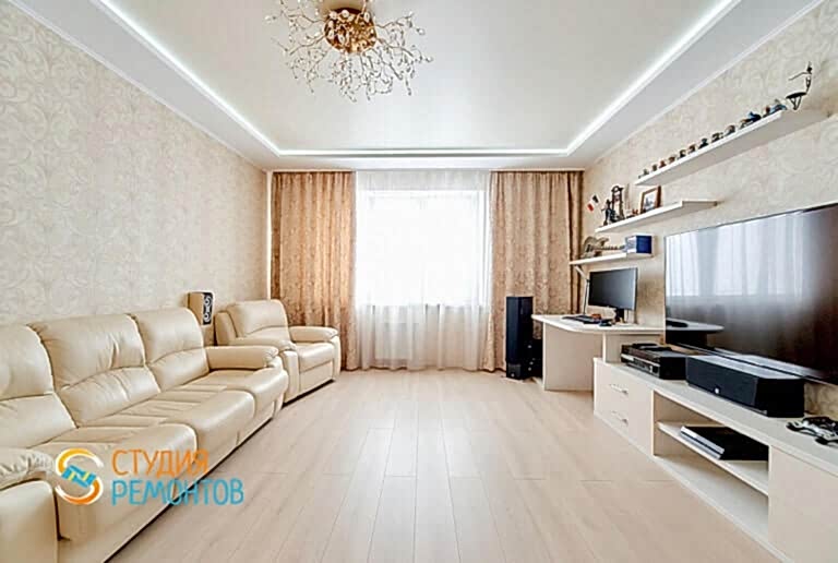 (входит: монтаж электрики; стяжка пола; штукатурка стен; шпаклевка стен; укладка ламината; поклейка обоев; монтаж плинтусов; установка Пинап монтаж натяжного потолка)