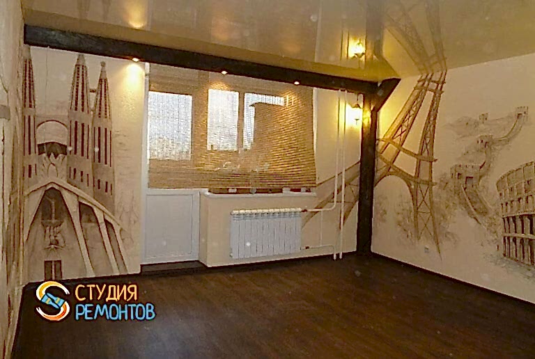 (входит: демонтаж существующих покрытий; поклейка обоев; Пинап потолков; укладка ламината; монтаж плинтусов)