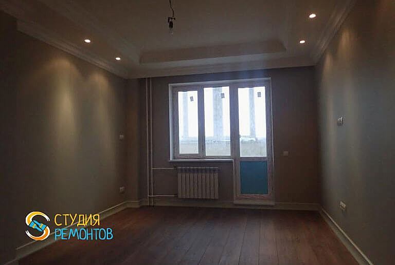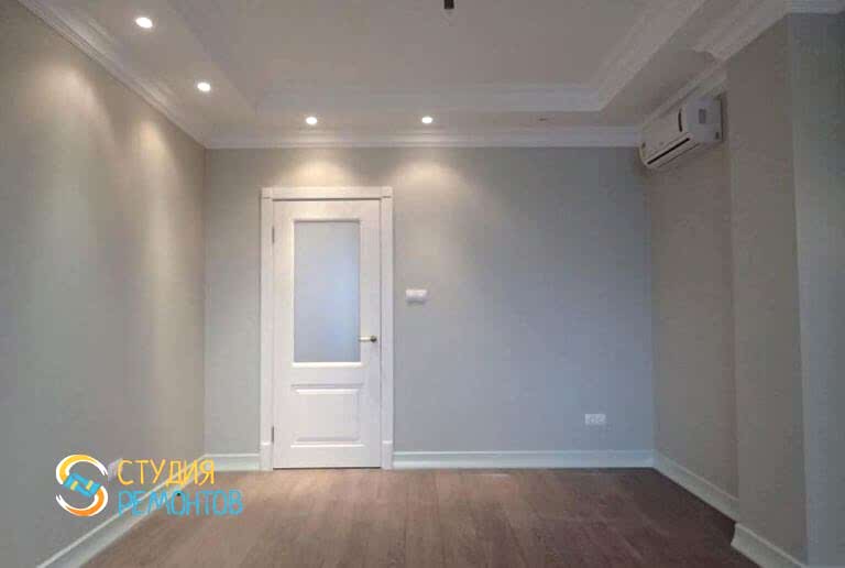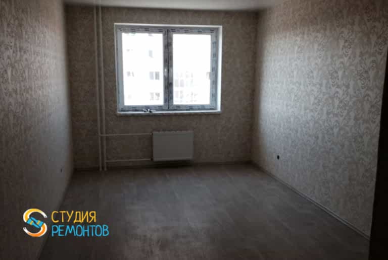 (входит: демонтаж существующих покрытий; стяжка пола; Пинап стен; выравнивание потолка; замена электрики; грунтовка пола, стен и потолка; шпаклевка стен и потолка; поклейка обоев; окраска потолков; укладка паркетной доски; монтаж плинтусов; замена батарей; влажная уборка помещения)