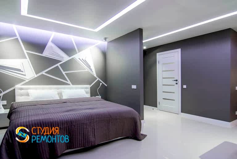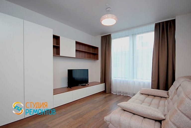 (входит: выполнение демонтажа; сухая стяжка пола; Пинап пола; штукатурка стен в 2 слоя; выравнивание откосов; устройство сложных ГКЛ конструкций на потолке; шпатлевка стен и ГКЛ потолка; покраска потолка; поклейка обоев и покраска стен; укладка паркета; установка точечного освещения; монтаж дверей и наличников; подключение розеток и выключателей)