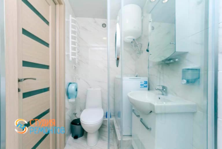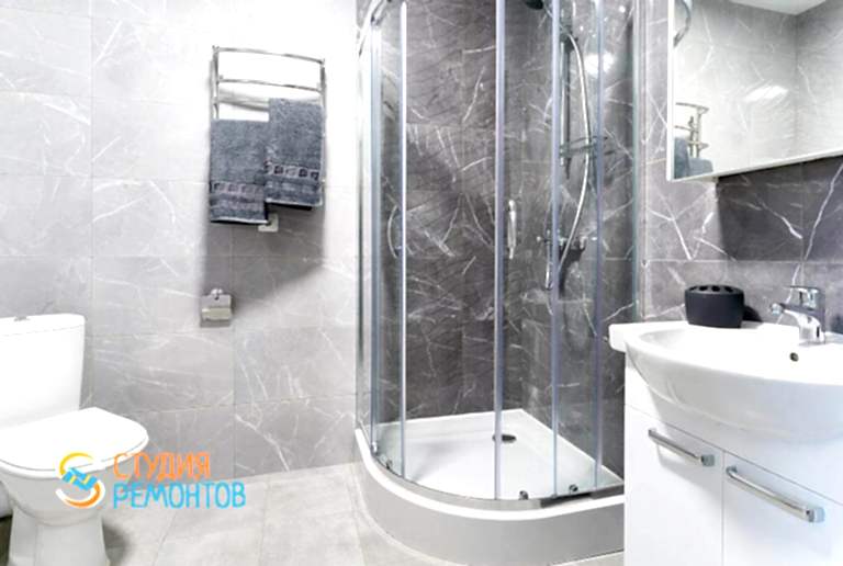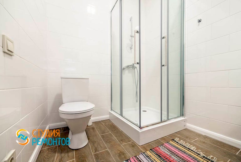 (входит: демонтаж существующих покрытий; установка панелей; установка реечного потолка; укладка плитки на Пинап монтаж кранов)