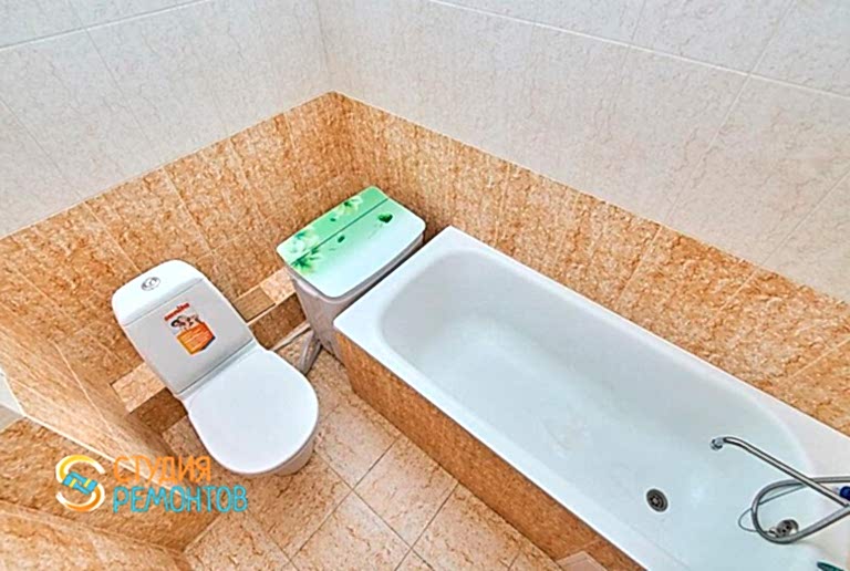 (входит: демонтаж существующих покрытий; установка панелей; установка реечного потолка; укладка плитки на Пинап монтаж кранов)