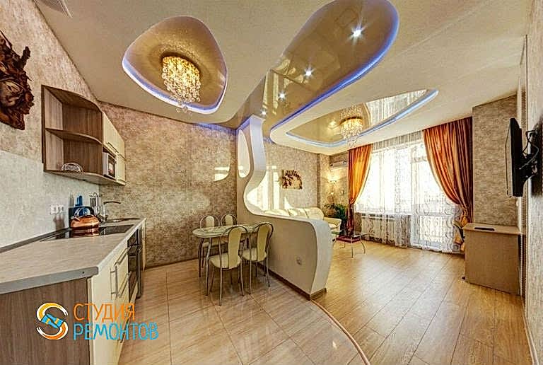 Пинап стяжка пола по маякам; штукатурка стен по маякам; шпаклевка стен; оклейка стен обоями и покраска; монтаж натяжного потолка; укладка ламината и плитки; разводка сетей; установка освещения.Все материалы включены в стоимость)