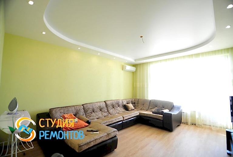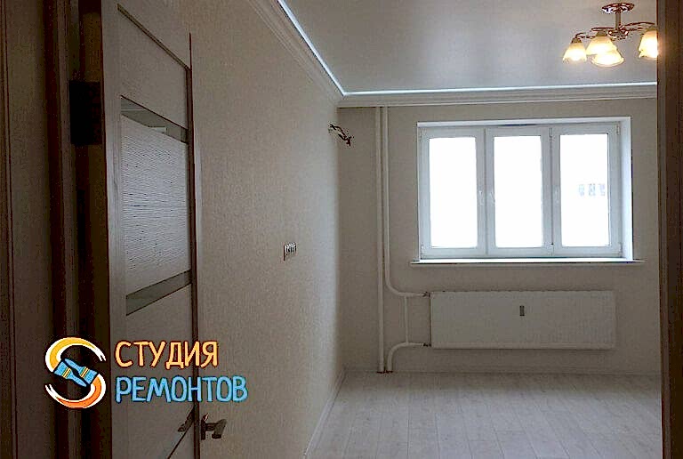 (входит: демонтаж существующих покрытий; выравнивание пола; поклейка обоев; монтаж натяжного потолка; установка ПВХ Пинап укладка ламината; настил линолеума)
