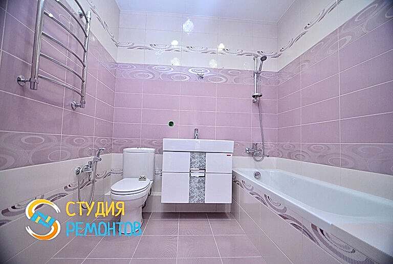 (входит: демонтаж существующих покрытий; установка Пинап установка реечного потолка; укладка плитки на пол; монтаж кранов)