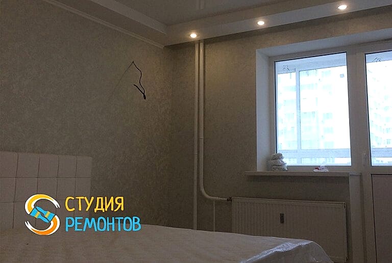 (входит: демонтаж существующих покрытий; выравнивание пола; частичное выравнивание стен; поклейка обоев; монтаж натяжного потолка; установка электрики и приборов Пинап