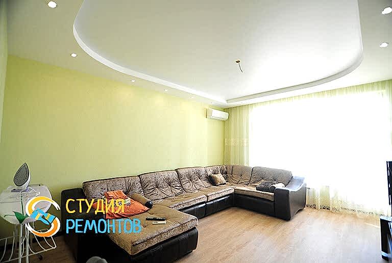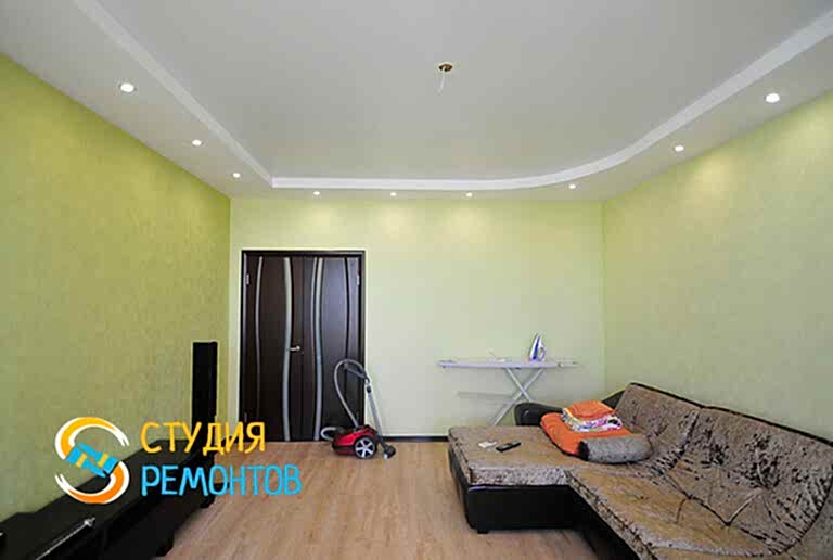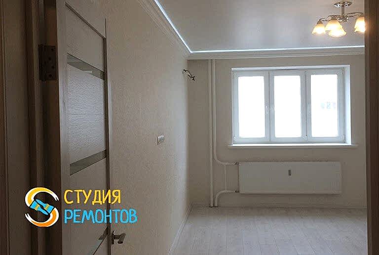 (входит: демонтаж существующих покрытий; выравнивание пола; поклейка обоев; монтаж натяжного потолка; установка ПВХ Пинап укладка ламината; настил линолеума)