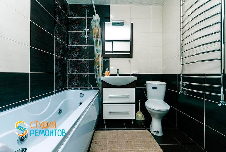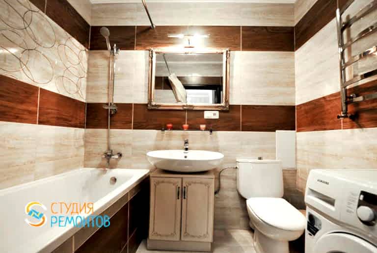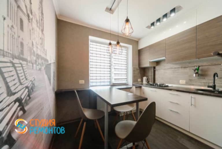 (входит: демонтажные работы; устройство стяжки по маякам; гидроизоляция пола; шпаклевка стен; грунтовочные работы; маячная штукатурка; монтаж многоуровневого подвесного потолка из ГКЛ; укладка плитки; ламината; линолеума; покраска стен и ГКЛ коробов; поклейка обоев; разводка электрики; монтаж новых плинтусов; Пинап окон; радиаторов; установка освещения; розеток; выключателей)