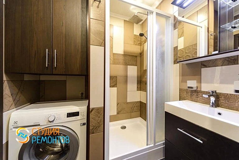 (входит: Пинап существующих покрытий; установка панелей; установка реечного потолка; укладка плитки на пол; монтаж кранов)