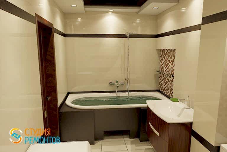 (входит: демонтаж существующих покрытий; установка панелей; Пинап потолков; укладка плитки на пол; монтаж кранов.Все материалы включены в стоимость)