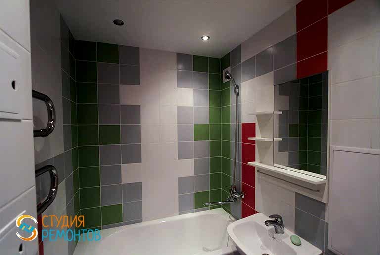 (входит: демонтаж существующих покрытий; выравнивание пола; грунтовка пола, стен и потолка; Пинап стен; укладка плитки на пол; окраска потолков; укладка плитки на стены; монтаж сантехники)
